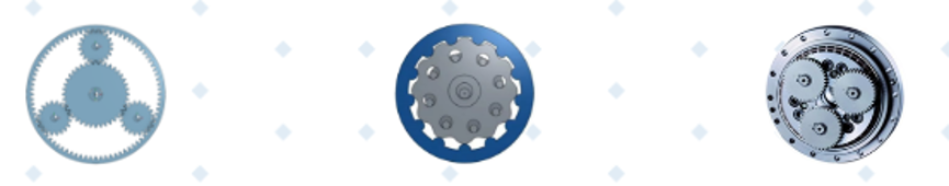 行星減速機(左) 擺線輪減速機(中) RV 減速機(右)